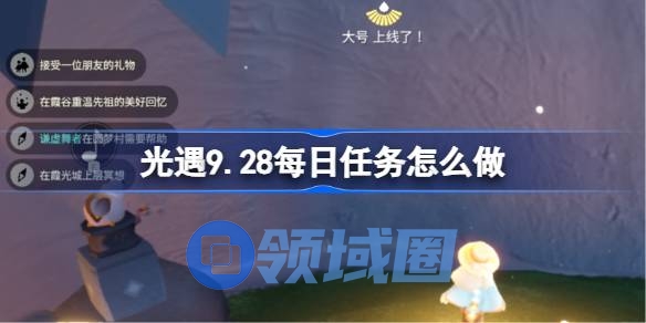 以上就是领域圈游戏为大家带来的光遇9.28每日任务怎么做解答,大家都了解了吗?还想要了解更多的内容那就请继续关注领域圈游戏吧。