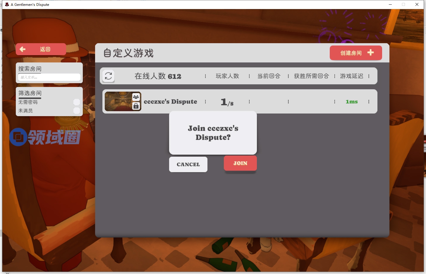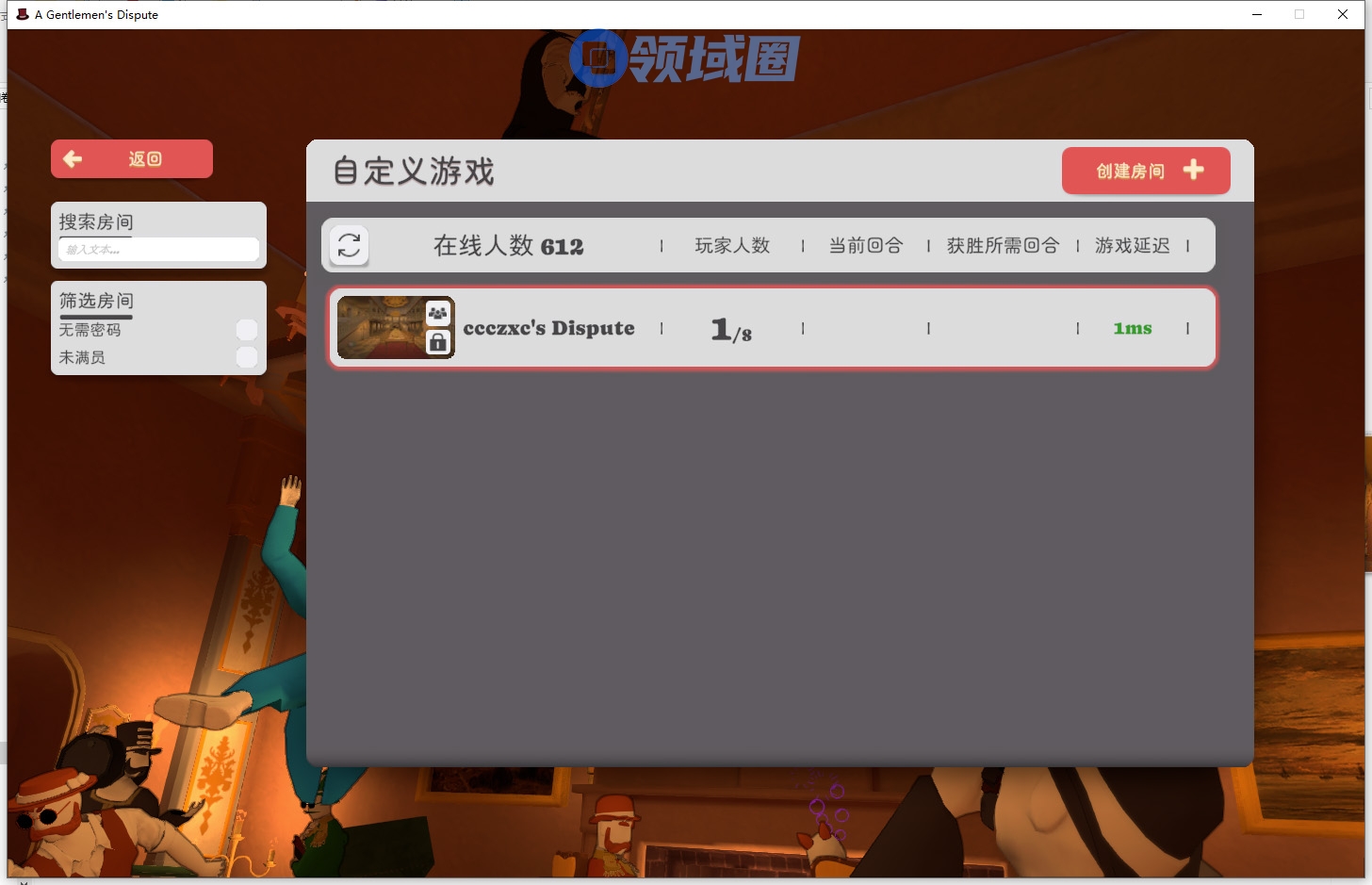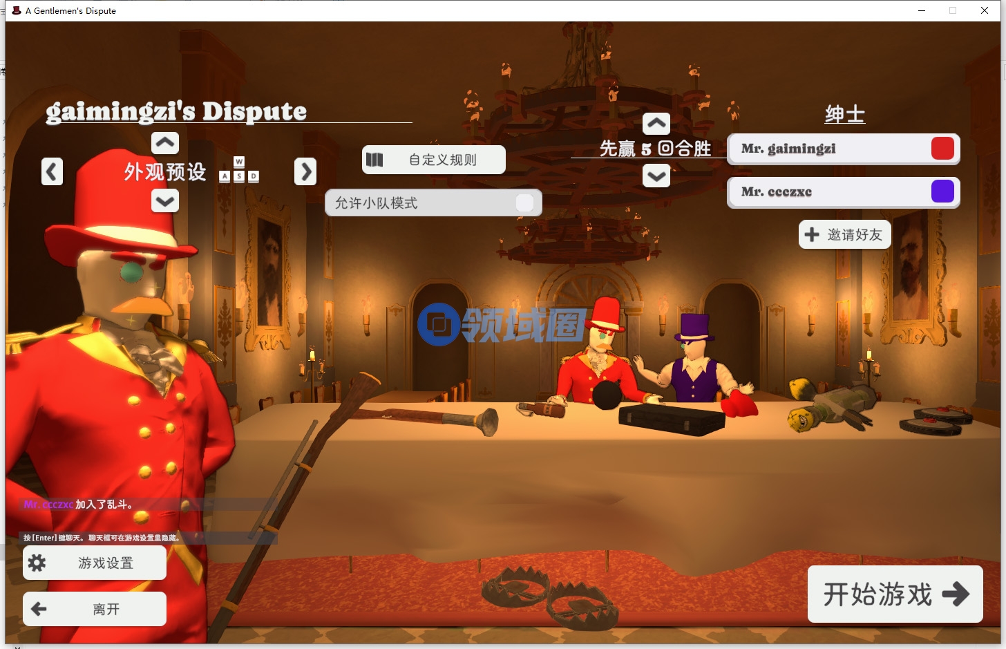 1:通过游侠对战平台《礼帽大乱斗》房间进入游戏。