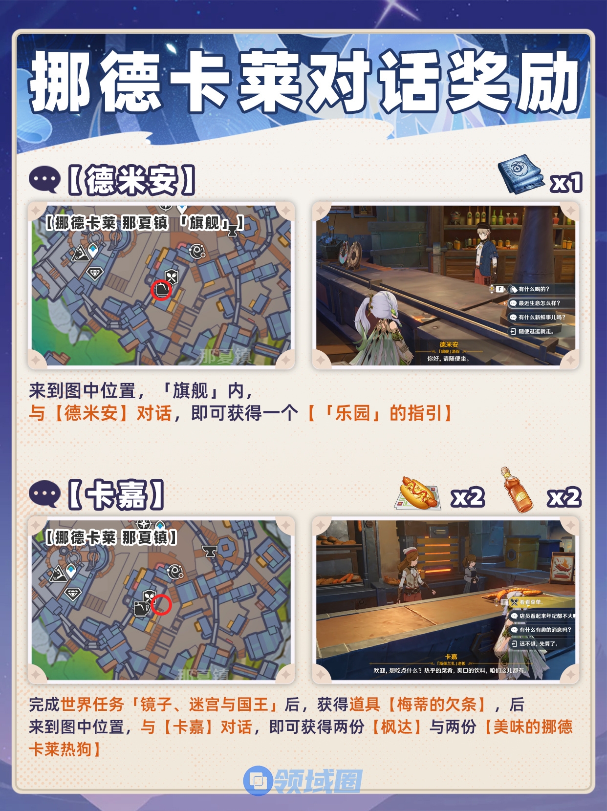 以上就是领域圈游戏为大家带来的原神挪德卡莱npc赠礼大全解答,大家都了解了吗?还想要了解更多的内容那就请继续关注领域圈游戏吧。