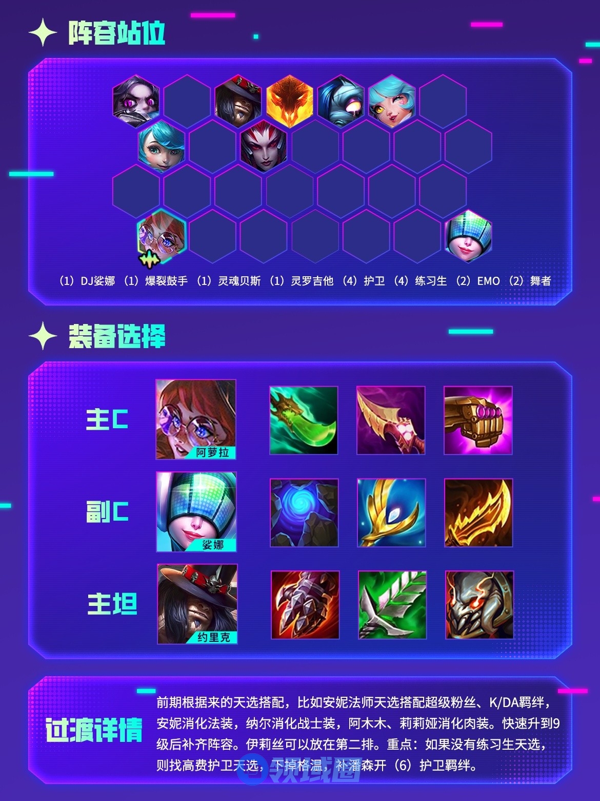 金铲铲之战最近开启了强音对决新赛季,在这个赛季中不同的阵容各自的玩法也是不一样的,那么练习生九五阵容怎么搭配,下面就让我们来看看金铲铲之战练习生九五阵容选择推荐。