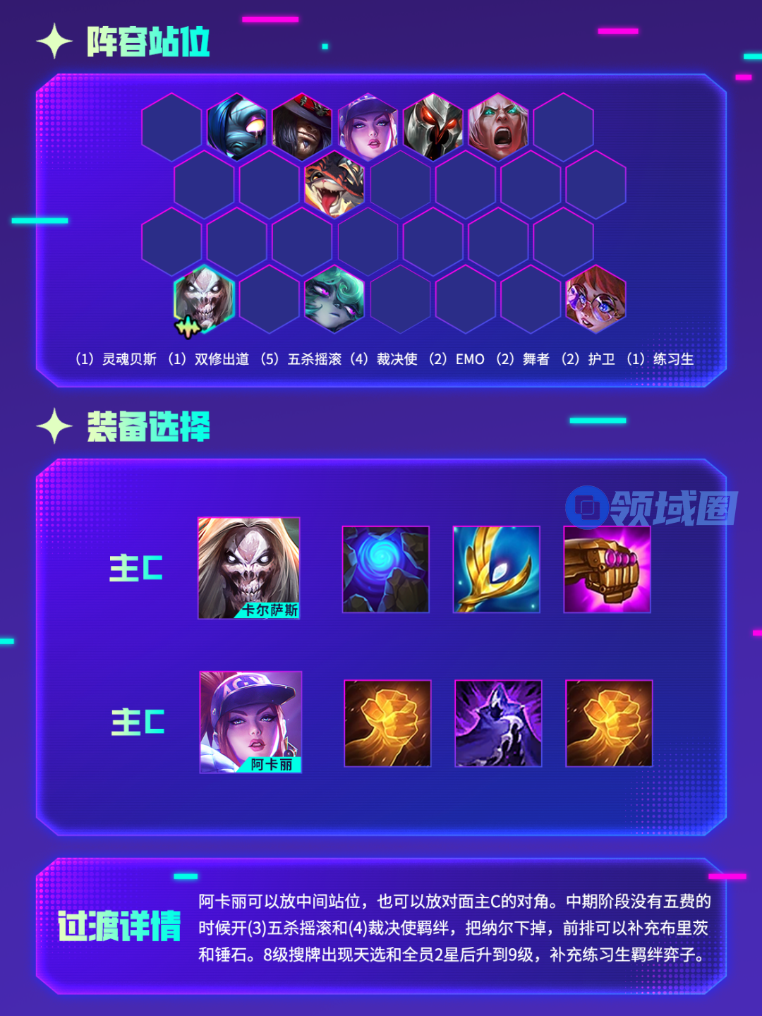 以上就是金铲铲之战新版唱跳双C阵容选择推荐的全部内容了,希望玩家可以顺利的知道怎么才能吃鸡,更多精彩内容请关注领域圈游戏。
