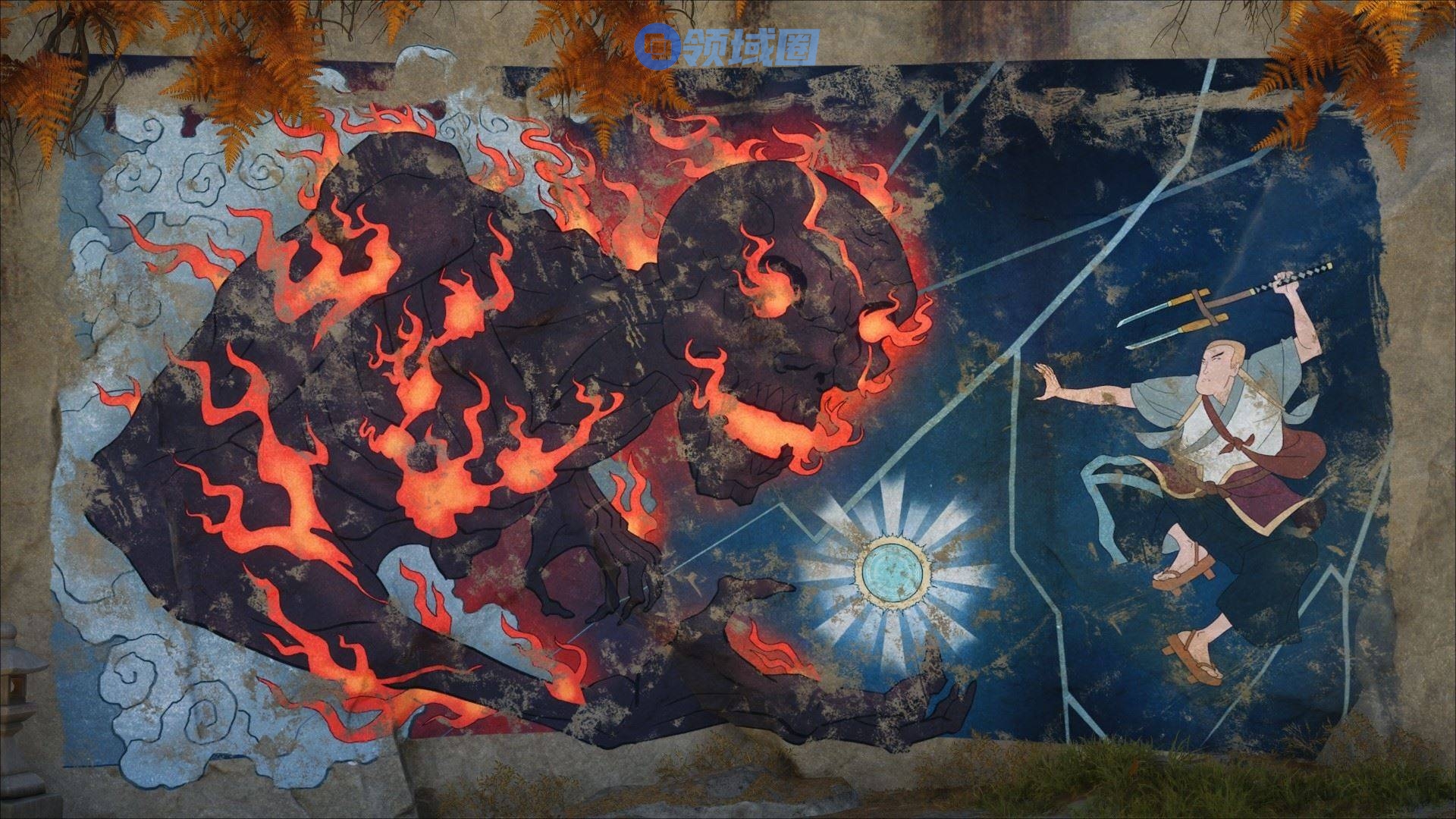 走到悬崖边时右转即可看到这幅壁画,描绘了《声名狼藉2》正统结局中的终极对决。