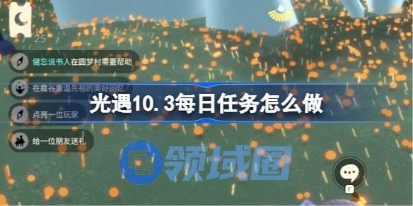 以上就是领域圈游戏为大家带来的光遇10.3每日任务怎么做解答,大家都了解了吗?还想要了解更多的内容那就请继续关注领域圈游戏吧。