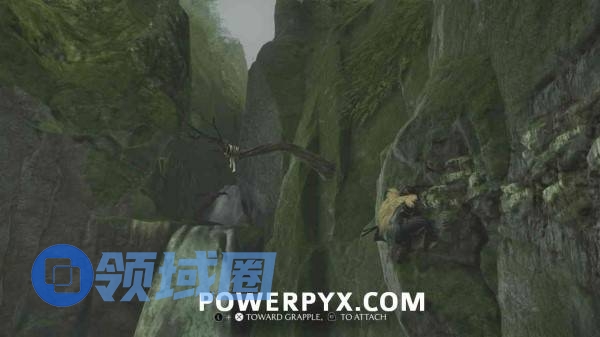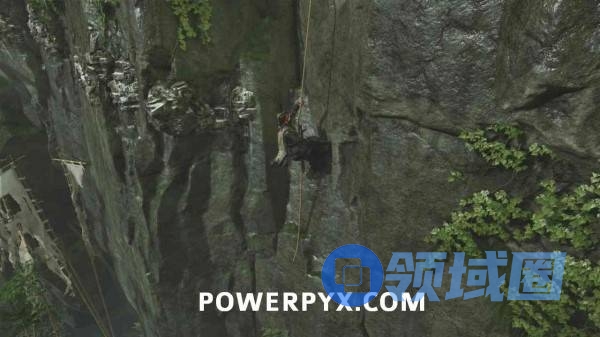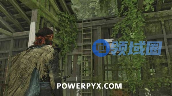 右转进入房屋,爬梯子到屋顶,再跳到岩壁处往上爬。