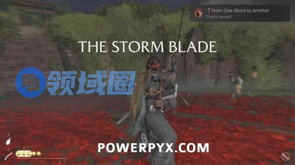 战胜盗刀贼即可获得风暴之刃,解锁奖杯【战鬼传承】。