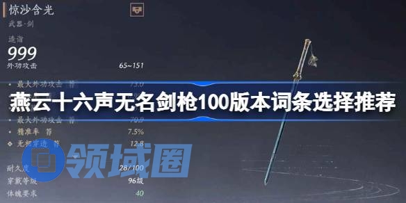 以上就是燕云十六声无名剑枪100版本词条选择推荐的全部内容了,希望玩家可以该怎么刷,更多精彩内容请关注领域圈游戏。