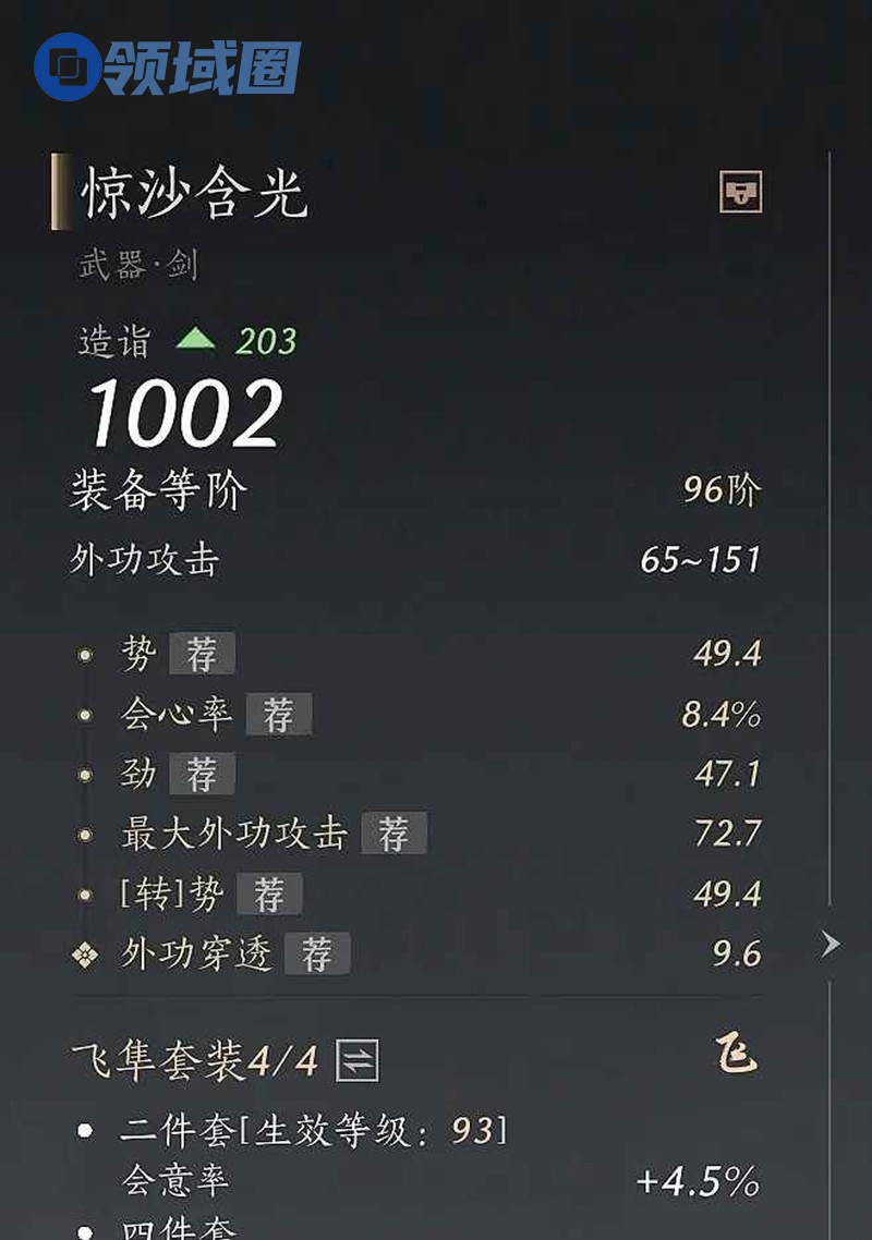 黄字会意率39+%,会心率40%,精准率全身2-3条,新版无名会意概率心法套装加成直接来到了飞套45.3%,玉套52.8%,所以会心不要太高,精准也不用满极致提升大外增伤。