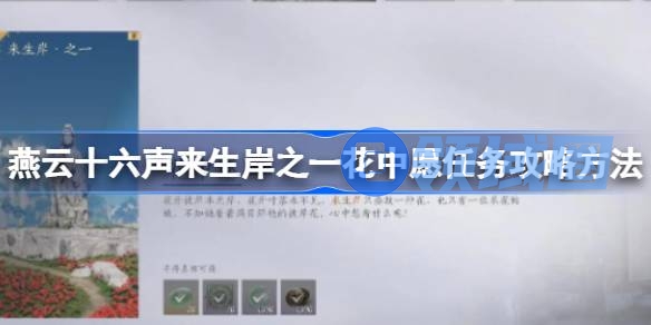 燕云十六声是一款武侠类型的动作冒险手游,在游戏里面每一个地区可以探索的地方都是非常繁多的,而且任务也是层出不穷,那么游戏中的来生岸之一花中愿任务怎么做呢,下面就让我们来看看燕云十六声来生岸之一花中愿任务攻略方法。