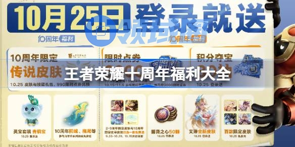 王者荣耀即将迎来十周年的庆典活动,本次活动期间可以获得3000限时点券以及免费史诗皮肤哦,大家知道有哪些福利吗?下面为大家带来的具体内容,感兴趣的玩家们千万不要错过哦!