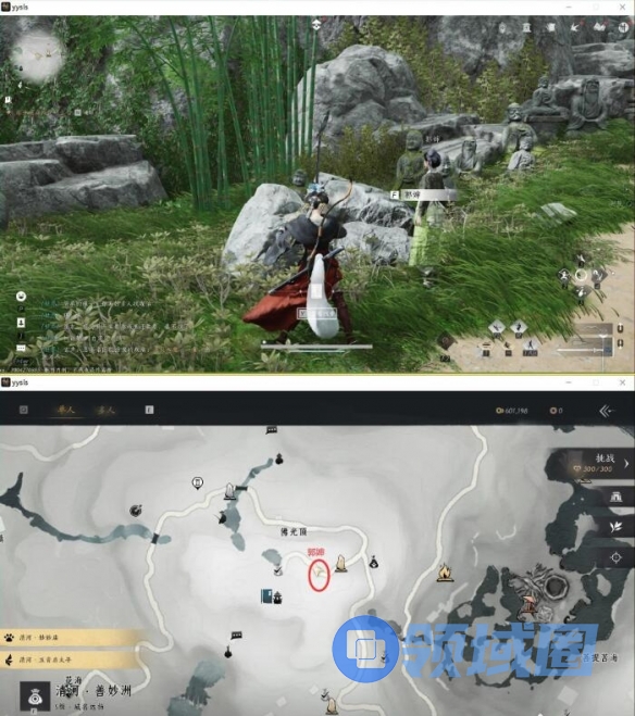 1、首先我们需要前往佛光顶和郭婶进行对话,位置如下图所示;