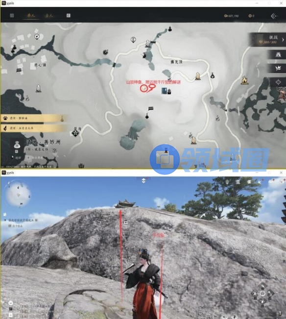 2、然后我们前往山顶神龛,在那附近找到千斤坠进行解谜,获得绣着祟字的奇怪钱袋;
