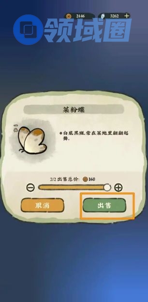 2、在物品列表中选择需要出售的"菜粉蝶"物品。