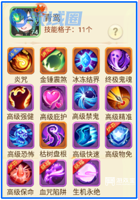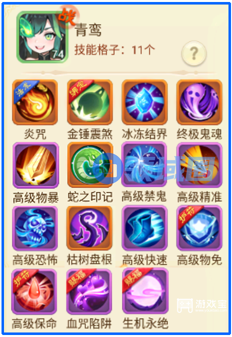 6、PS6:由于青鸾在日常挑战活动中表现拉胯,我们的打造方向以PK竞技为主,“鬼魂”能同时抵御“相繇、腾蛇”,所以以“鬼魂”为核心搭配其他技能。