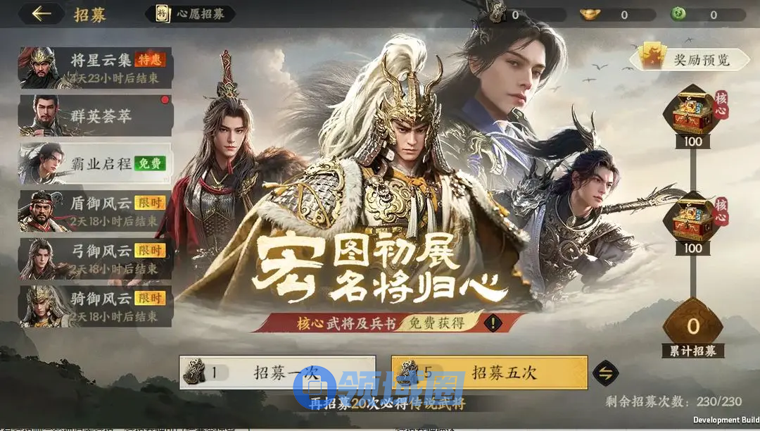 3、开服前5天将星卡池保底更低,主线卡池全免费。
