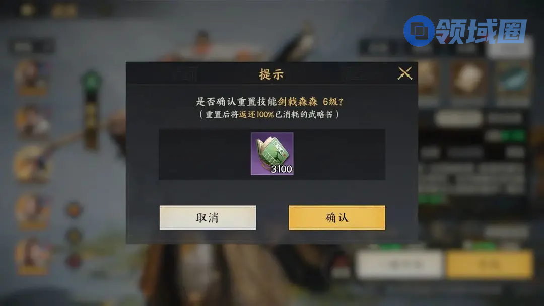 2、武将免费重置100%返还消耗,移出共鸣前先重置技能。