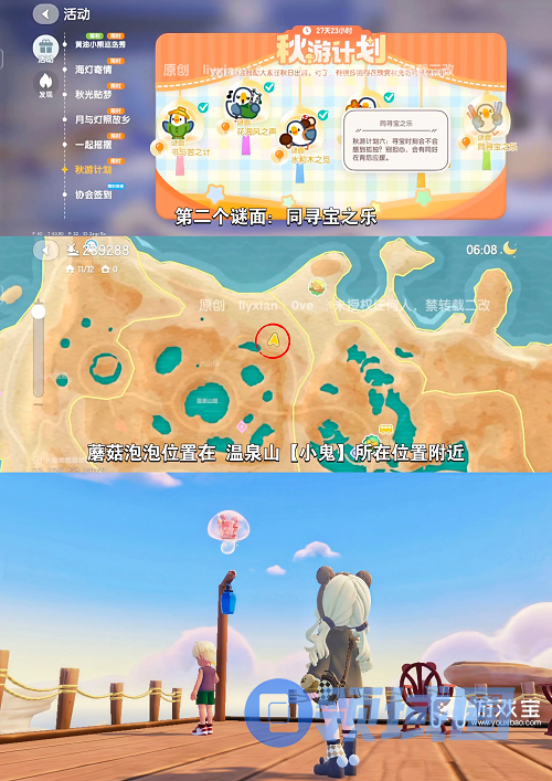 心动小镇手游的秋游计划活动期间,根据页面提示的谜面信息,找到谜面提及的位置并找到蘑菇泡泡,即可获得泡泡中的神秘表情礼物,具体可以参考心动小镇秋游计划第三周谜面泡泡位置。