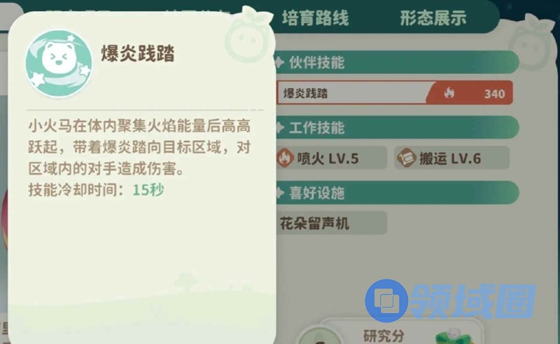小火马的技能是跳跃践踏,与雷哲莽技能一样。