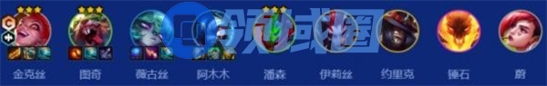 标准九人口阵容:金克丝、老鼠、薇古丝、阿木木、潘森、蜘蛛、掘墓、锤石、蔚