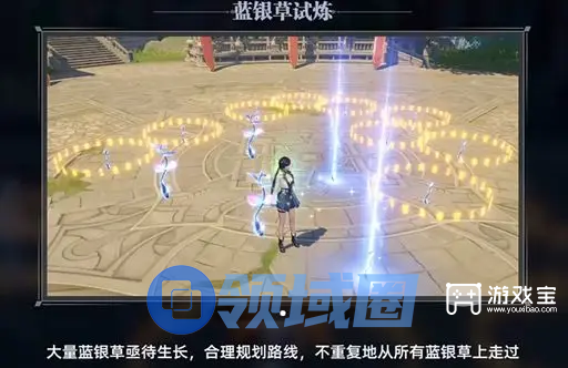 最后从右侧边缘返回起点,确保每株蓝银草仅踩踏一次。