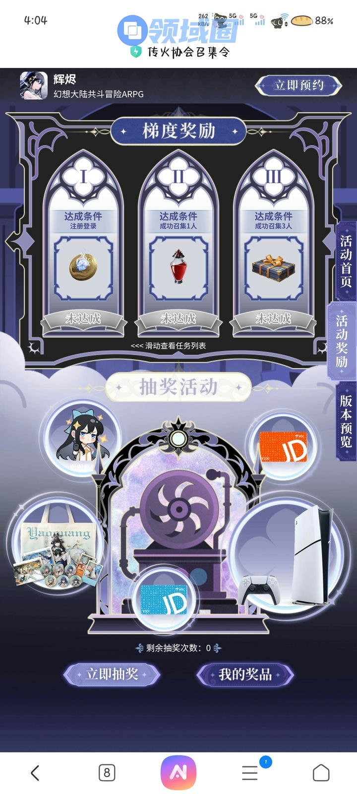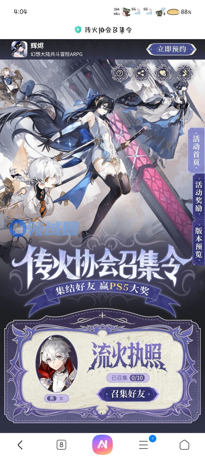 辉烬将在10月15日正式上线,最近辉烬开启了预抽卡活动,参与活动可以获得各种奖励,那么这个预抽卡活动在哪参加呢?入口在哪呢?下面快跟随领域圈小编一起来看看吧。