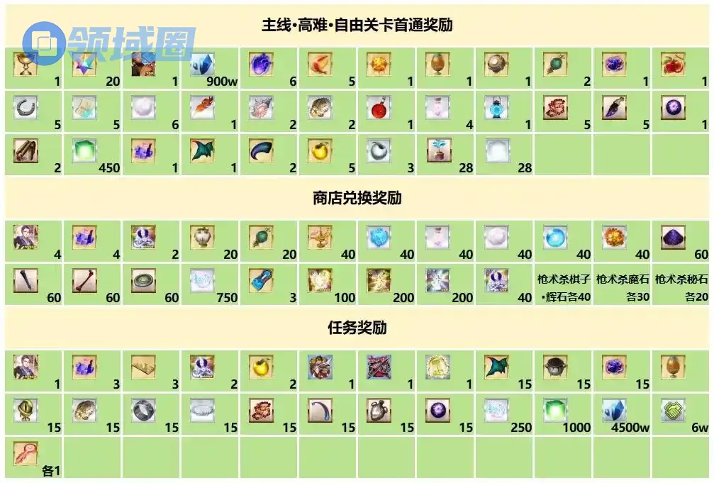 以上是本次活动可获取的奖励情况,本次活动除了商店兑换奖励之外,还有任务奖励。