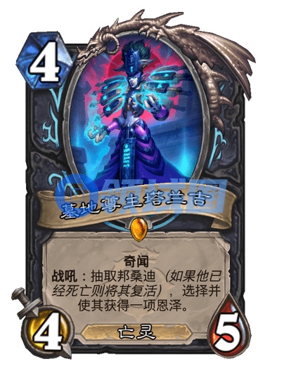 奇闻。战吼:抽取邦桑迪(如果他已经死亡则将其复活),选择并使其获得一项恩泽。