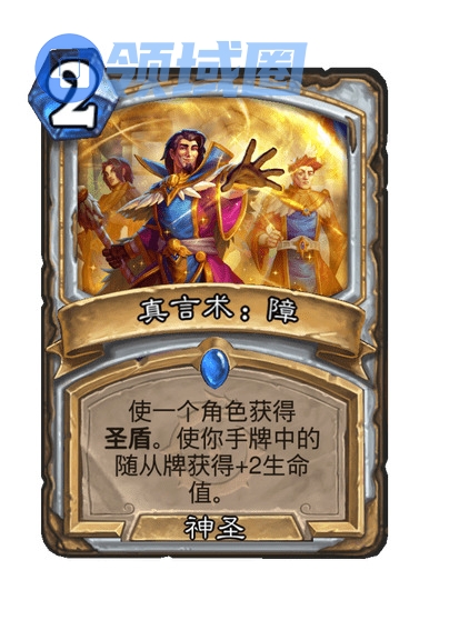 使一个角色获得圣盾。使你手牌中的随从牌获得+2生命值。