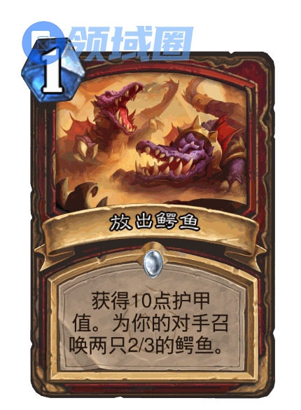 获得10点护甲值。为你的对手召唤两只2/3的鳄鱼。