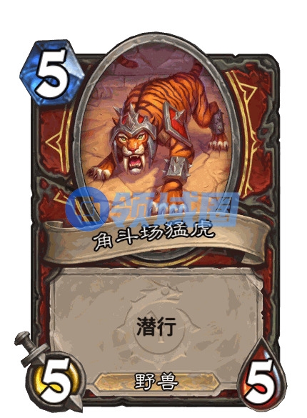 从你的牌库中随机召唤一个随从。为你的对手召唤一只5/5并具有潜行的老虎。