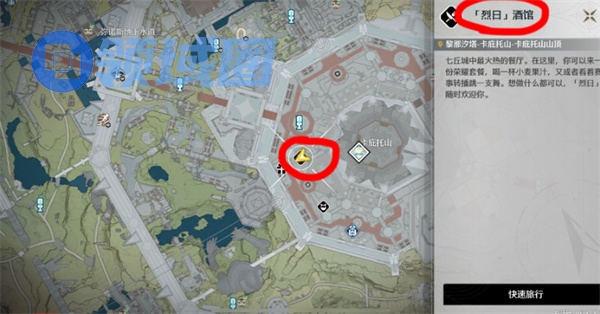 1、前往黎那汐塔地区,传送至【烈日酒馆】。