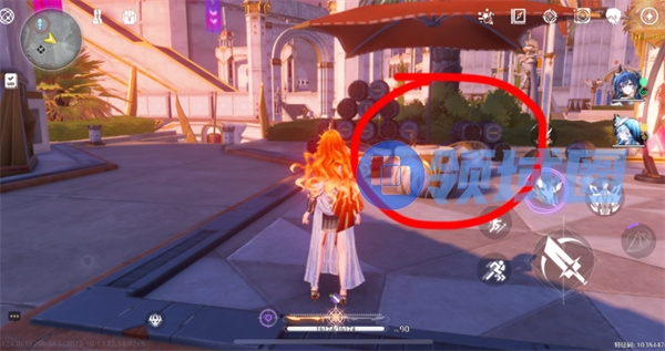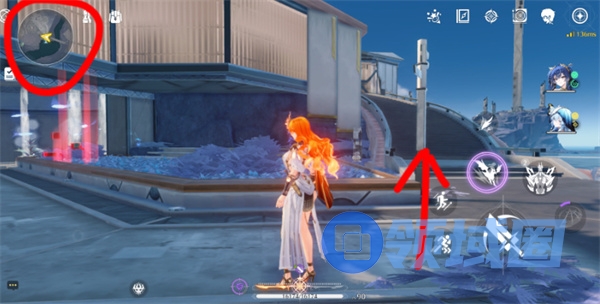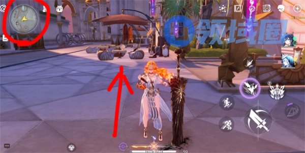 2、从传送点出发,朝小地图北方移动,右侧有楼梯。