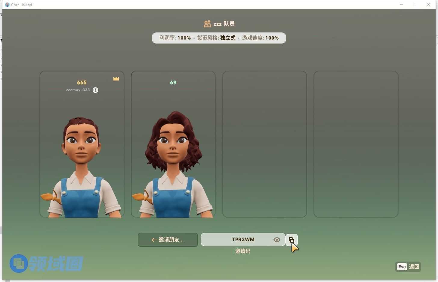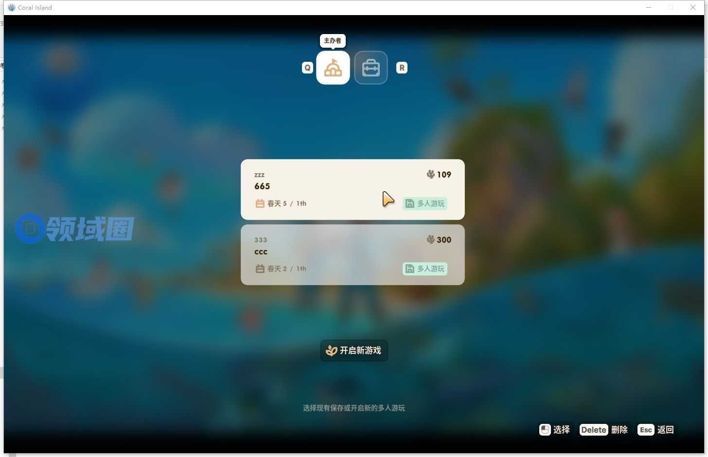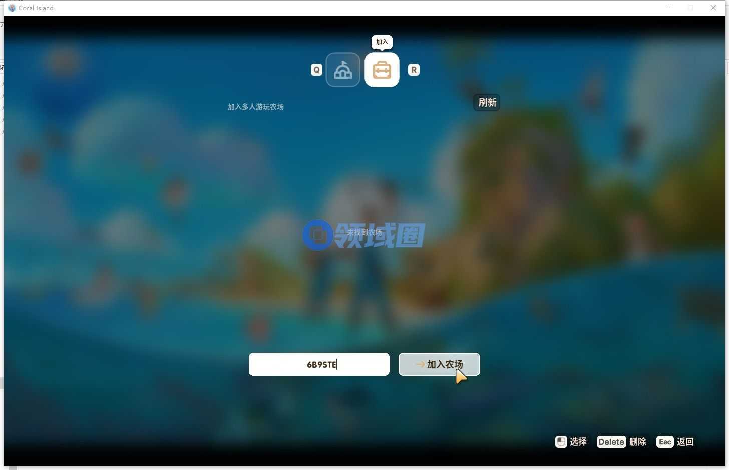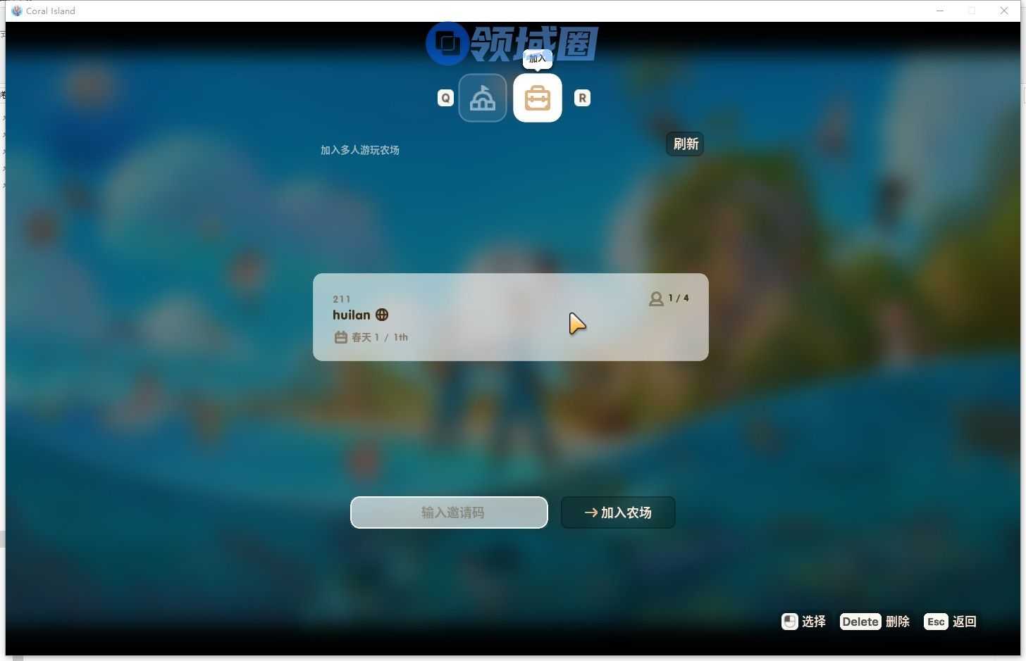 1:通过游侠对战平台《Coral Island 珊瑚岛》房间进入游戏。