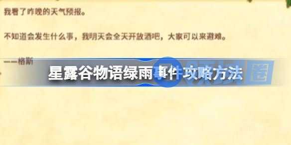 星露谷物语里的不少玩家在游戏过程中听说国绿雨这一神秘天气现象,却不太清楚具体会发生什么,需要做好哪些预防工作,下面就让我们来看看星露谷物语绿雨事件攻略方法。