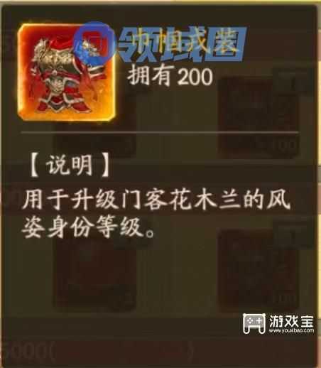 花木兰能复制等级、不缺见识,风姿属性可100%加成给金兰绑定门客,堪称无双挂件门客中的极品。
