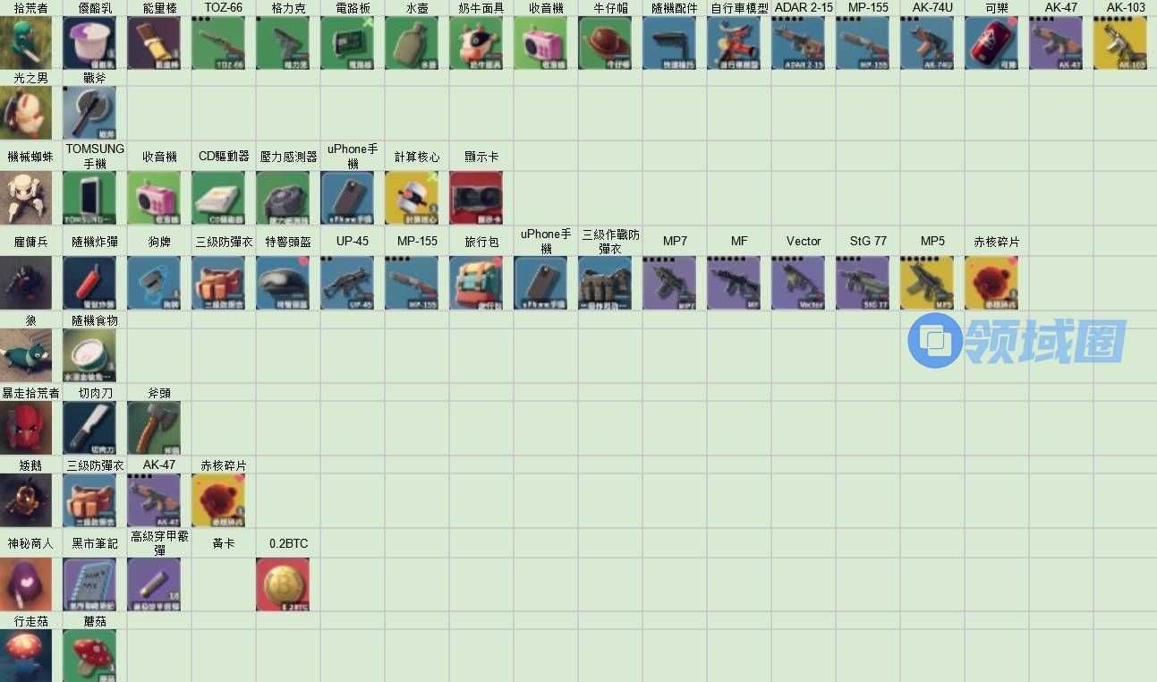 以上就是逃离鸭科夫零号区掉落物资一览,更多精彩内容请关注领域圈游戏。