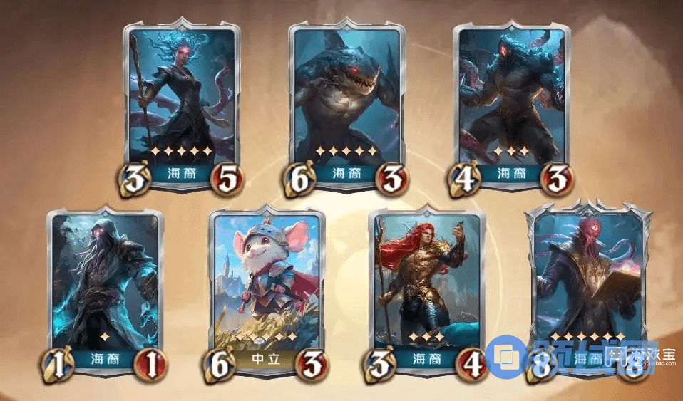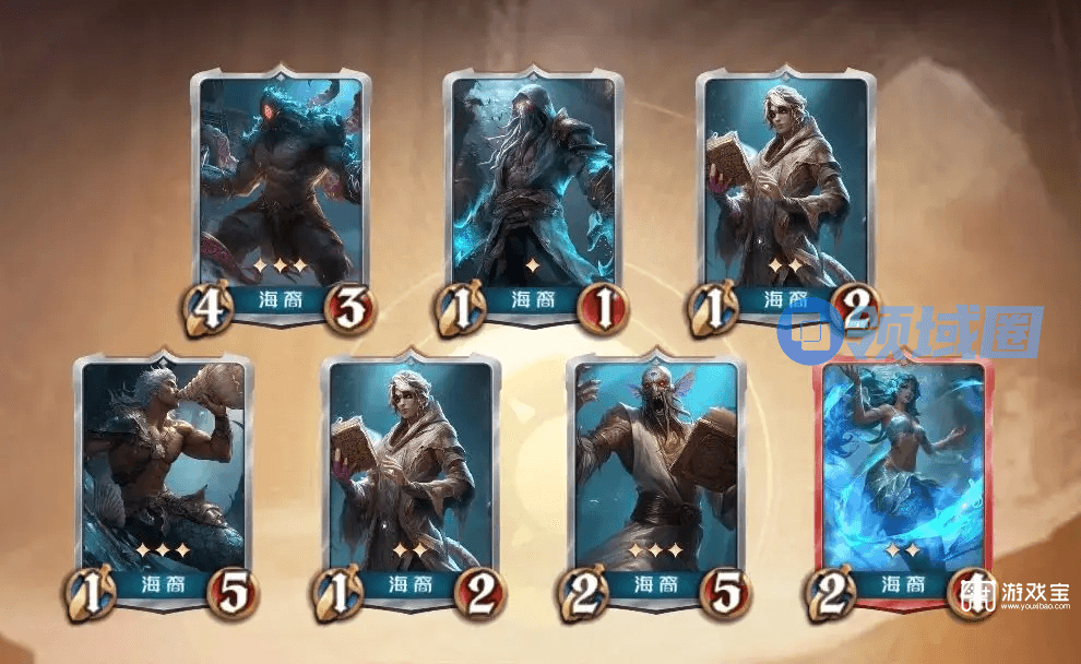 这样配合海裔前中期压制力会比较高,而且为后期打好基础:同时满足古神降临的条件和普通海裔阵容恩泽的要求,并且积累必要的数值,做好这一步就能平稳过渡。如果你能够拿到聚力领袖,那就可以替换掉图中四号位的卡牌,总之确保有三个古神信徒在场,并且恩泽有一定数量,然后随机应变。