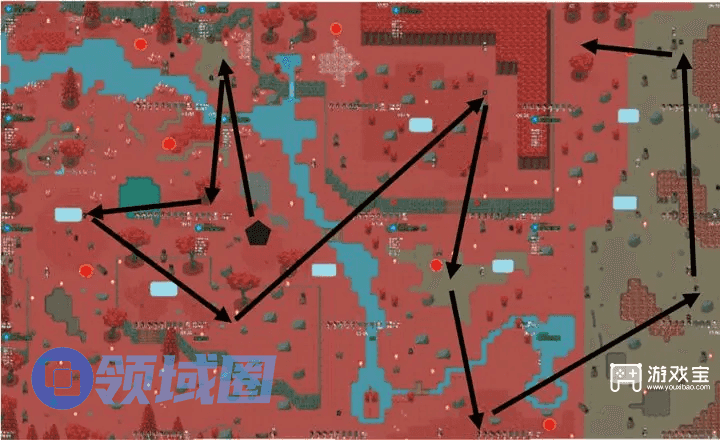 2、如图,从进入禁地开始,往上走开始进行刷图,只刷蓝色,如果能7分50秒完成蓝色怪全部清空,那么在最后一个传送门位置等待至倒计时2分钟,等待最后一个传送门刷新后开始跑图获取传送门信息。