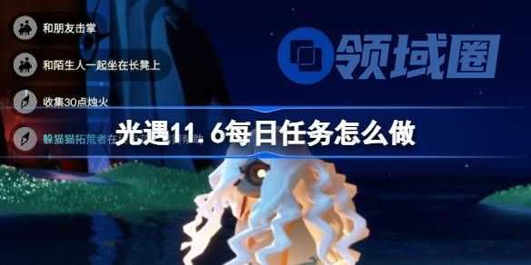 以上就是领域圈游戏为大家带来的光遇11.6每日任务怎么做解答,大家都了解了吗?还想要了解更多的内容那就请继续关注领域圈游戏吧。
