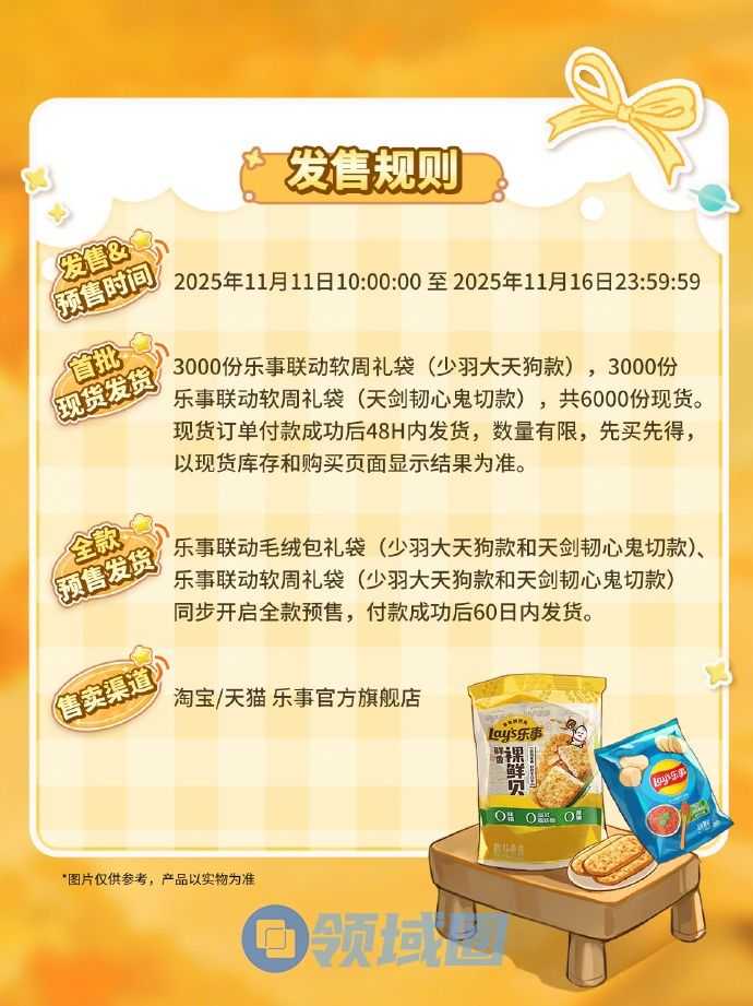 乐事联动毛绒包*1(少羽大天狗款或天剑韧心鬼切款二选一)(200*150mm)