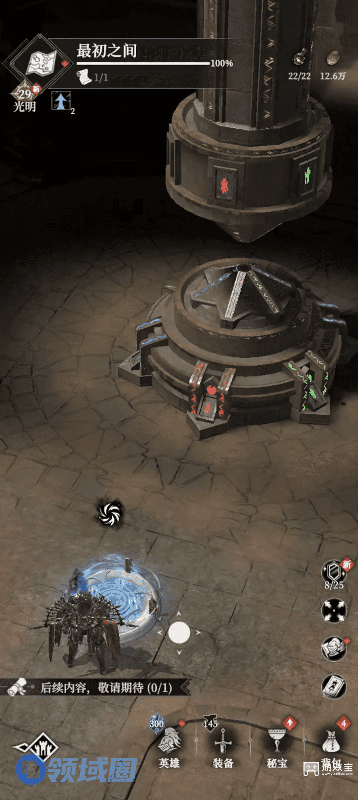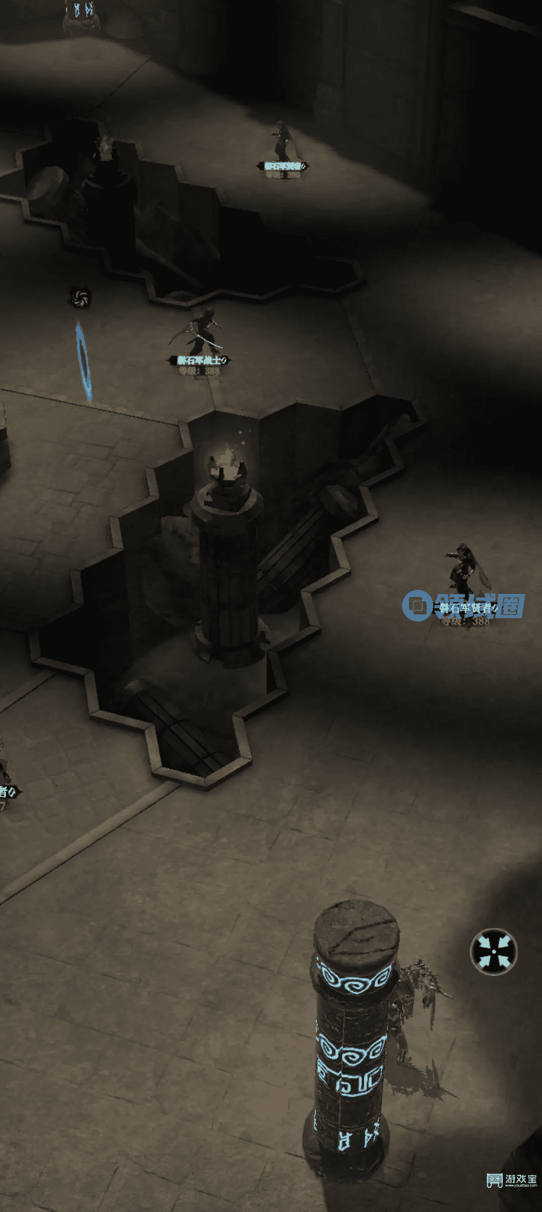 6、来到了第三阶段的本心,注意石像手中的颜色,这张图有5个石柱(2个红的不用管),其中3个需要先打怪,然后点击,每个石柱必须点击1次(激活),第二次是否点击(点亮)需要根据和石像对话的提示来判断。完成之后地图中间出现光圈。
