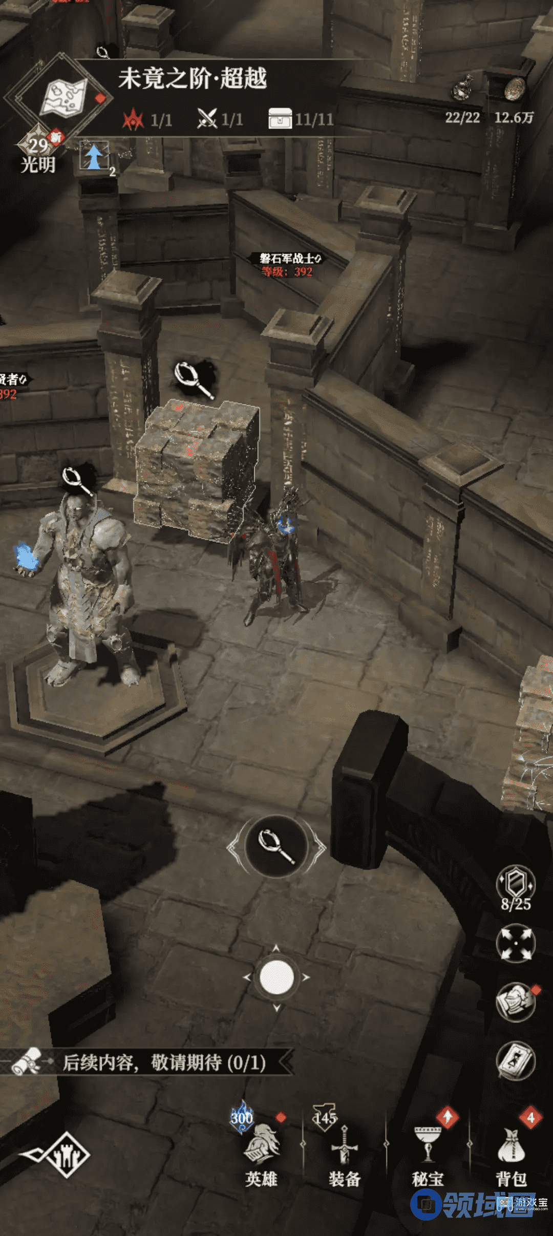 7、来到了第四阶段的超越,注意石像手中的颜色,推动对应颜色的石块(也只能推动对应颜色的石块,其他颜色不能推动),进入对应光圈。