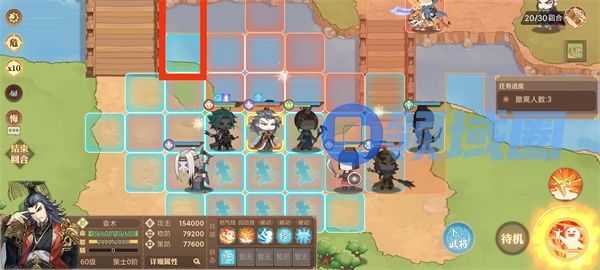 开局袁术和三盾位往右下走,保证不在敌方攻击范围就行,袁术可以开地图炮也可以不开(地图炮打的是上方的弓兵,留着友军杀也可以),尽可能集火保证三盾位的血量和给袁术充能。杀完之后尽快往上走靠近马车,为二阶段做准备。