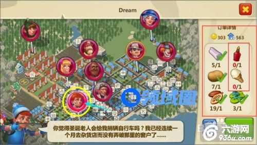 2、在订单页面,有许多小镇上的居民需要不同的货物。我们需要把这些货物一一找齐,发送给他们来赚取金币。我们以圈中这个小男孩的订单为例,右边是他需要的货物,打对号的是我们仓库中有的物品,现在我们还缺少两种物品。