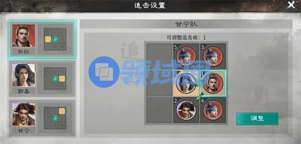 孙权站前排踩郭嘉和甘宁的追击格,郭嘉踩甘宁的追击格,甘宁双主动无需踩追击格。