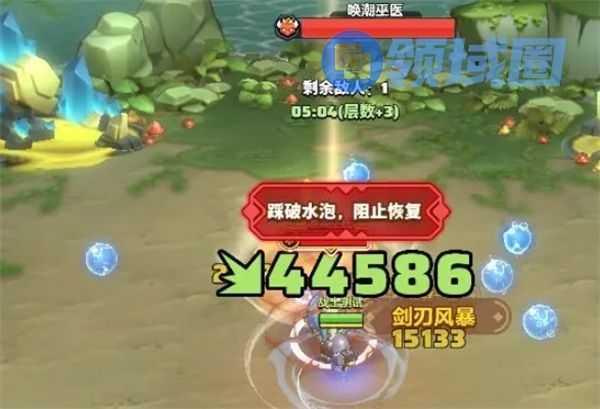 「唤潮巫医」会在地图上周期性的召唤【水泡】,并在短暂延迟后吸收水泡,回复血量。这就需要勇者们及时的踩破水泡,阻止其恢复。