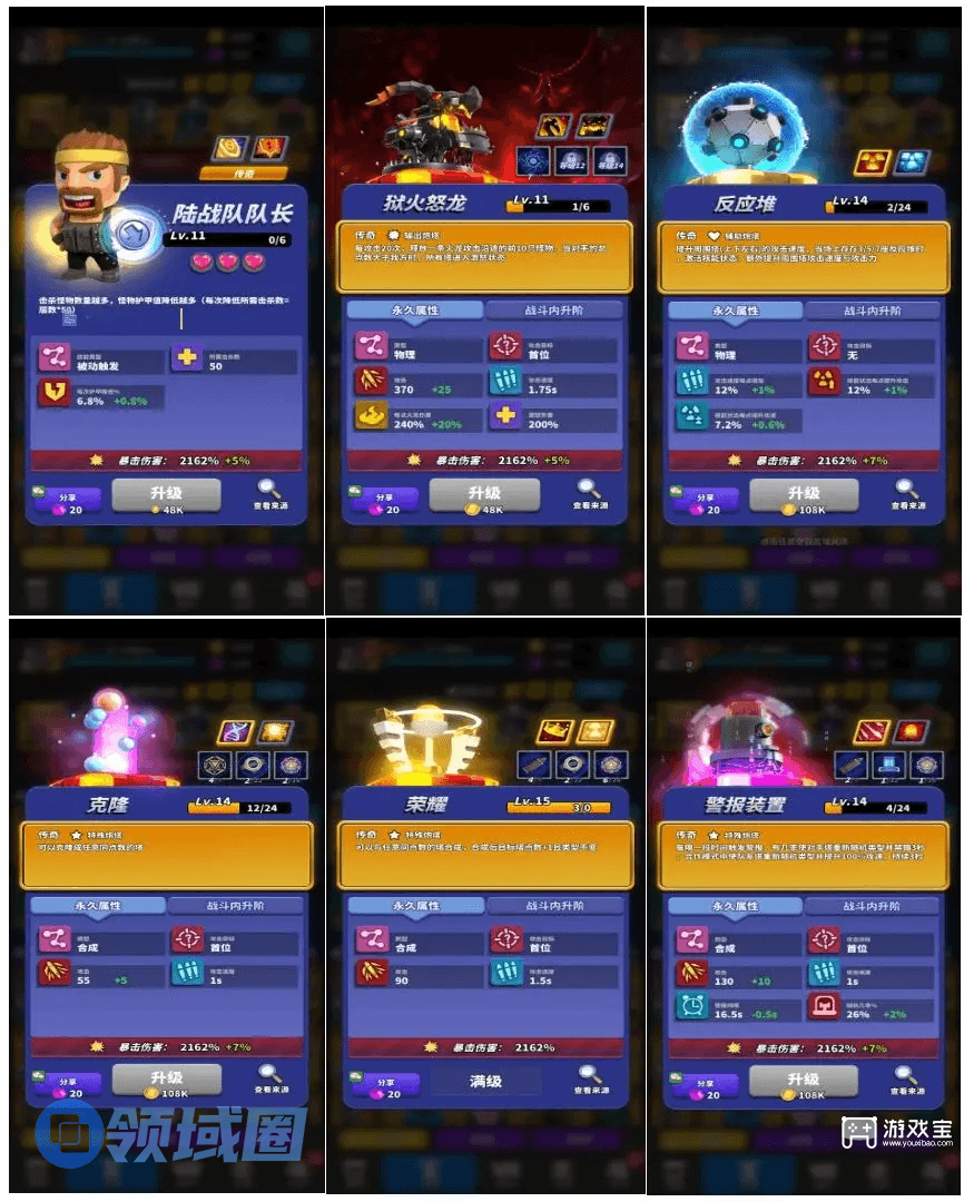 警报: 定位辅助,不过我这里把他定位成输出,所以是3保2,每隔15-20秒会使对手其中1-4个塔随机变更,成功率和控制个数由警报自身星级及科技等级决定。用来扰乱对手阵容是一把好手。