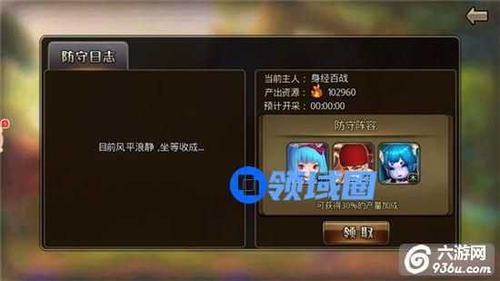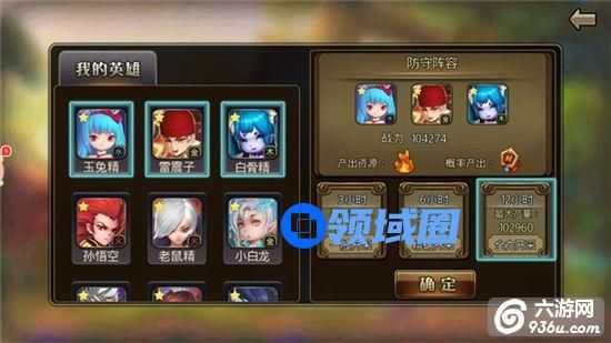 找到空位以后,选择英雄和生产时间。战斗力越强的三个英雄,产出的资源也就越多。开采的时间有三种选择,你可以根据自己的需要,来制定不同时常的开采计划,时间越长当然产量越高。