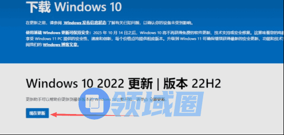 关于DX12报错还有一种解决办法,我们需要查看系统的版本号是否为22H2,如果系统版本号不是22H2,我们只需要进入微软网页,在主页就有显示更新22H2,点击现在更新,下载完成后即可解决。