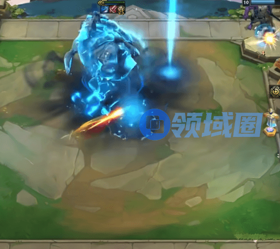 技能:从最远敌人的后方召唤一个元素。对被击中的敌人造成100点魔法伤害并使其减速20%,持续3秒当它到达时,用头撞向它并将其转向另一个远处的敌人,造成魔法伤害。