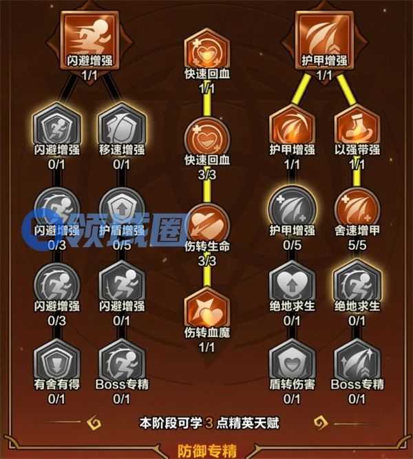 技能选择:用毒系的噩梦领域组成防御端,技能进阶选择30减伤和减少怪物百分之20攻击。